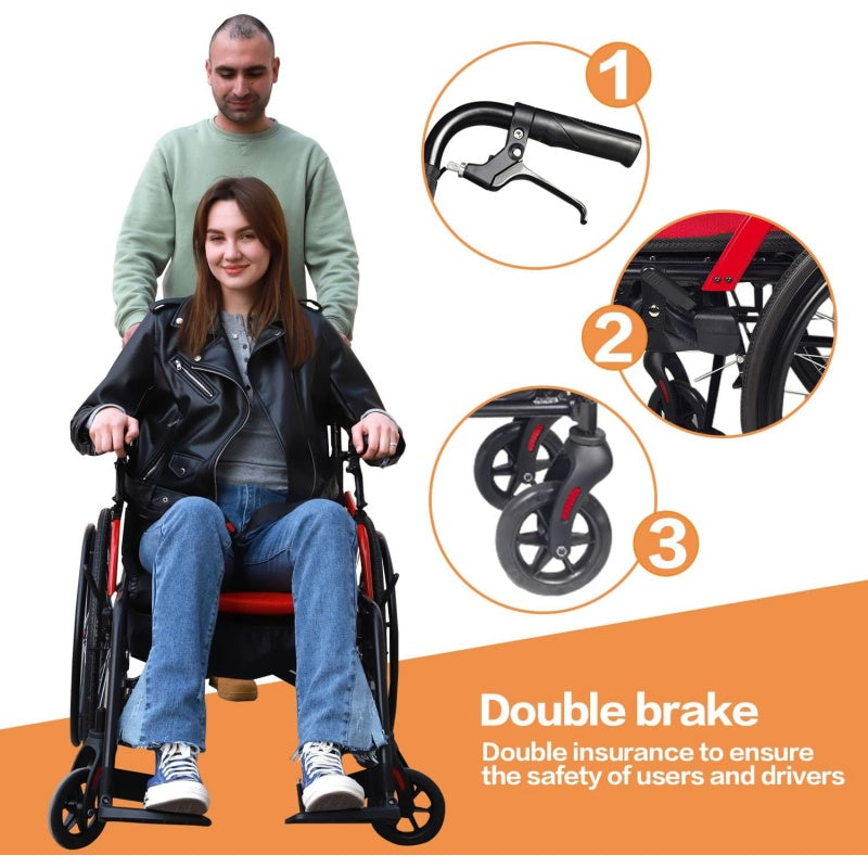 【Double front and rear brakes】Both the user and the pusher can stop the wheelchair by braking, which is easy to push and easy to brake