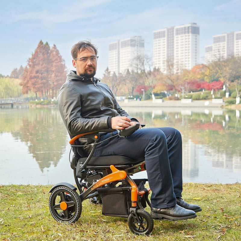 5.Safe driving electric wheelchair: The built-in electromagnetic braking system, reliable seat belts, and the use of aerospace grade materials add additional safety.