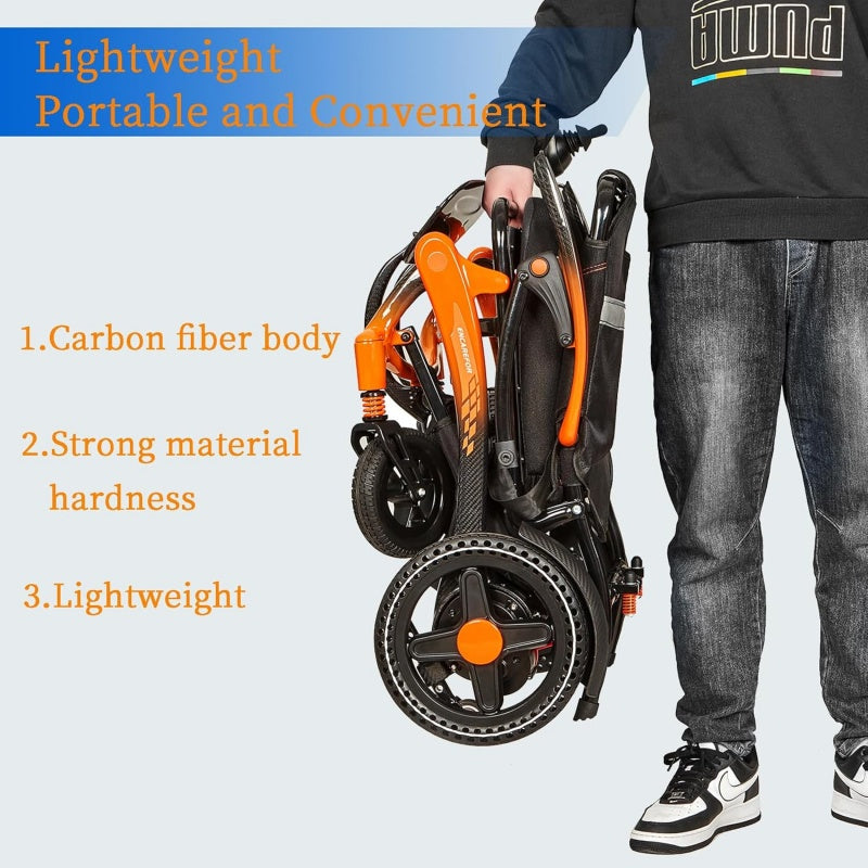 34Lb Carbon Fiber Lightweight Electric wheelchairs for Travel,15 Miles Long Travel Range Wheelchair,Brushless Motor All Terrain Power Wheelchair,Single Battery