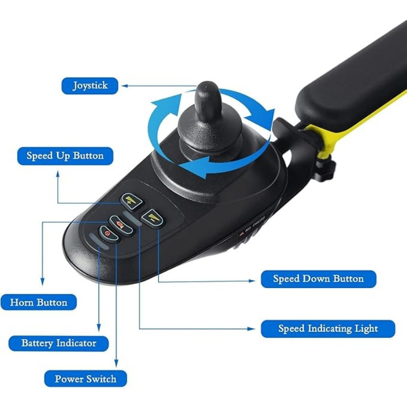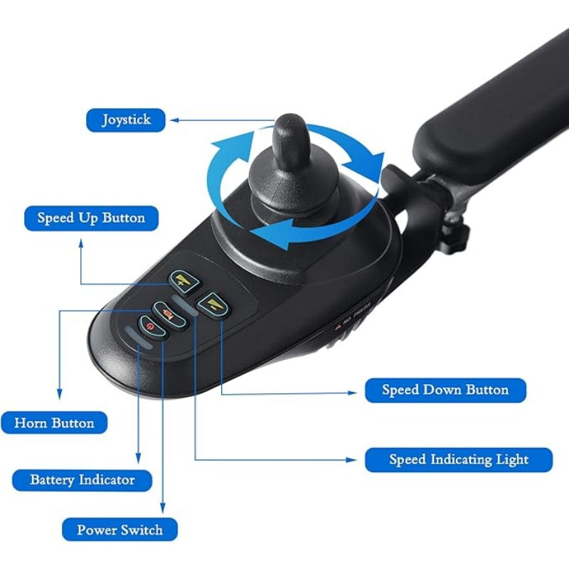 Safety and Independence, Hand in Hand We prioritize your peace of mind: UL-certified batteries with overcharge/overheat protection. Anti-tip rear wheels and ergonomic joystick with speed control for precise maneuvering.