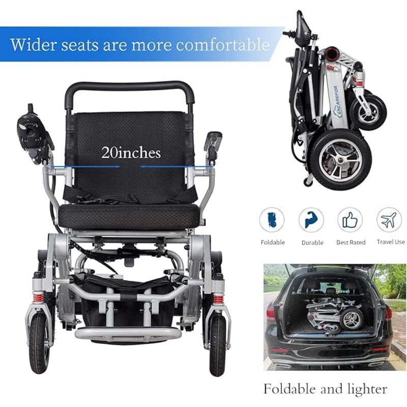 Compact Foldable Design: Lightweight electric wheelchair folds manually in seconds for car trunks, travel, and storage—no complex tools needed.